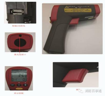 紅外測溫儀分為便攜式紅外測溫儀和固定式紅外測溫儀。我們在消防電氣檢測中常用的是測量范圍在-30-350℃,精度±2%或±2℃的便攜式紅外測溫儀。